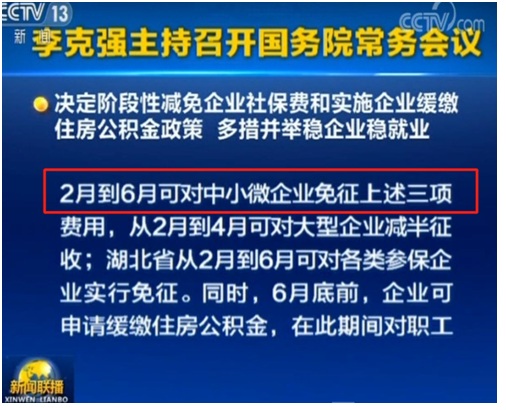 會議強調(diào),當(dāng)前統(tǒng)籌做好疫情防控和經(jīng)濟(jì)社會發(fā)展工作,一項迫切任務(wù)是穩(wěn)就業(yè)。穩(wěn)就業(yè)就必須穩(wěn)企業(yè)。會議確定,國務(wù)院總理李克強2月18日主持召開國務(wù)院常務(wù)會議,決定階段性減免企業(yè)社保費和實施企業(yè)緩繳住房公積金政策,多措并舉穩(wěn)企業(yè)穩(wěn)就業(yè)。